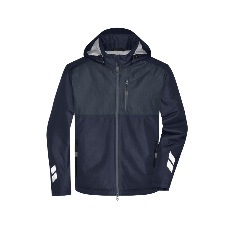 - Reflexelemente (ohne Schutzfunktion/keine PSA) an Rückenteil und Ärmel